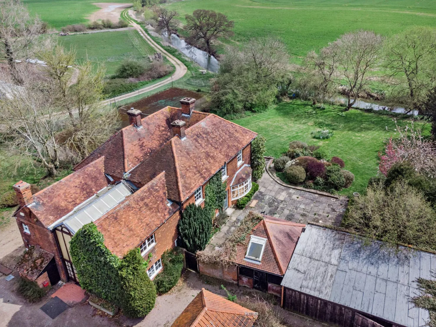 Mitchells Farm comprises a large 6-bed farmhouse, detached 1-bed cottage with separate dwelling approval and Essex barn with planning permission to convert to two 3-bed homes, all sitting in 4.18 acres.