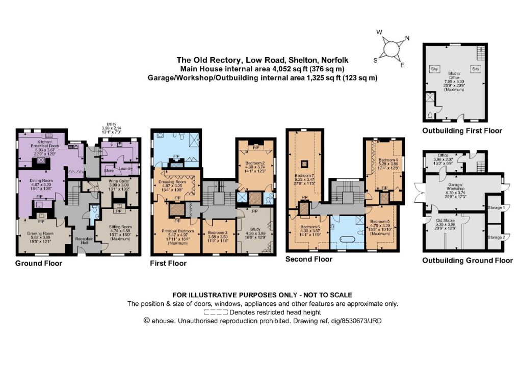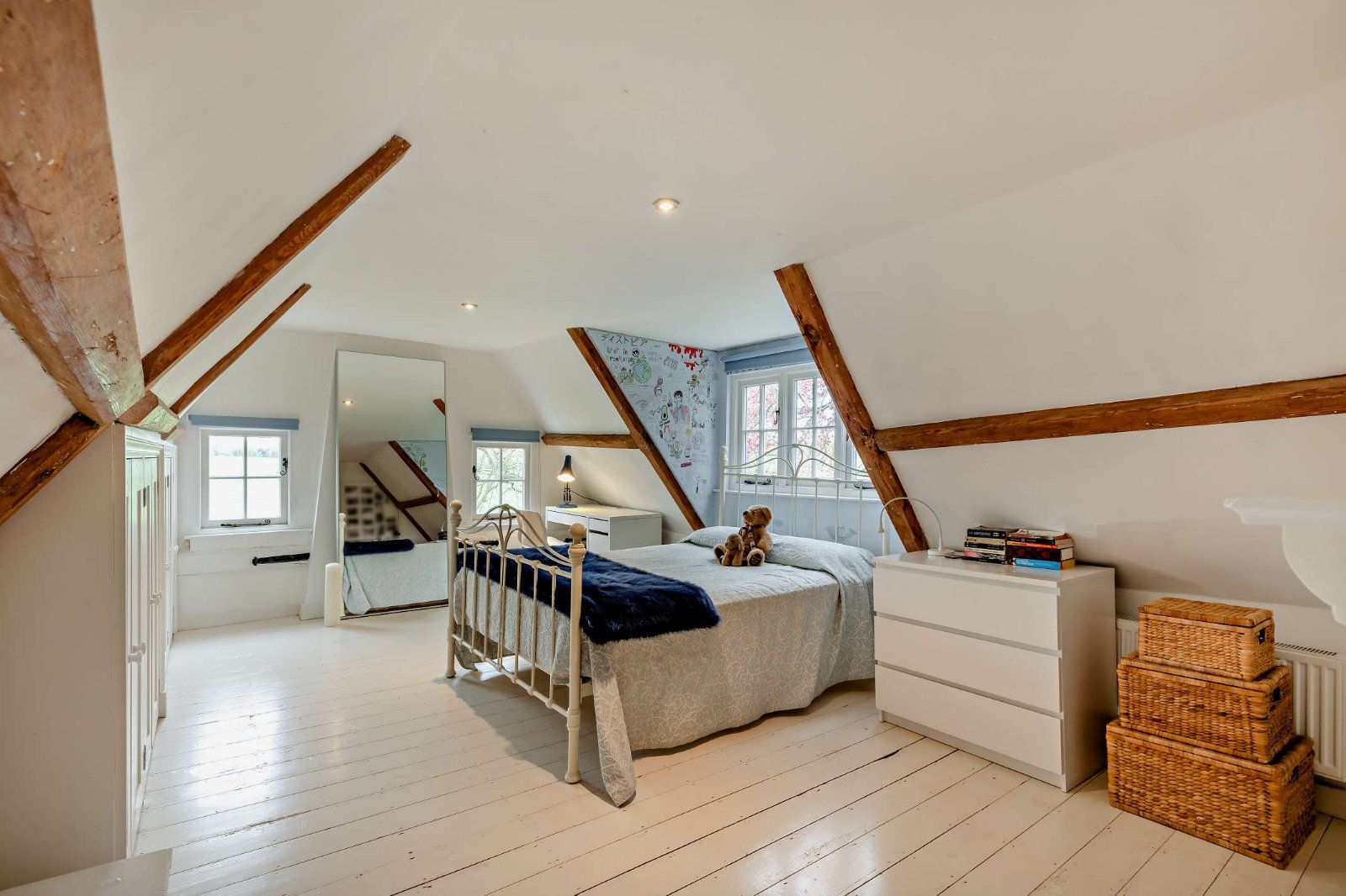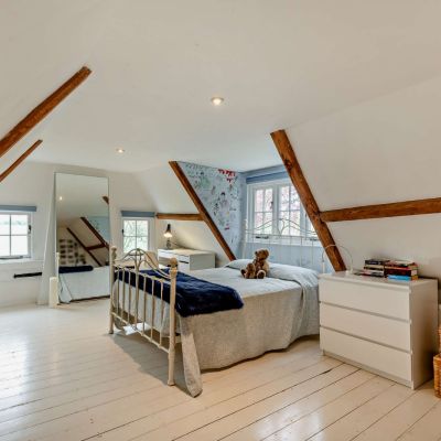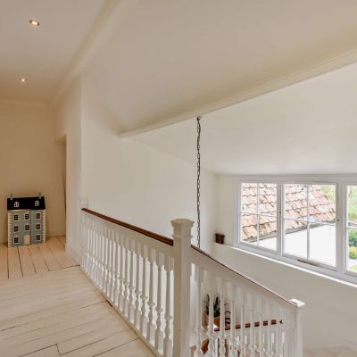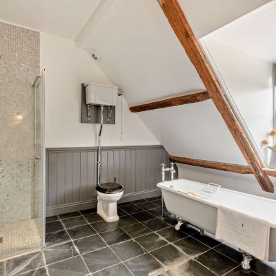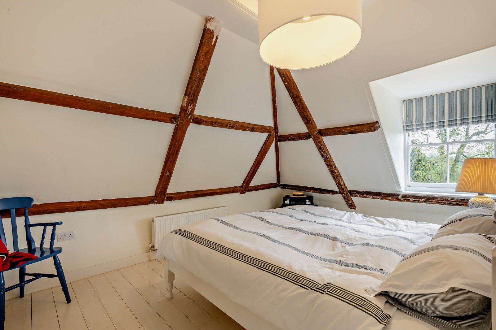 The generous first floor landing leads to an impressive principal suite, comprising a fully fitted dressing room and a large en suite shower room. Two further bedrooms and a study, also enjoying an array of fine traditional features and tranquil aspects, also occupy the floor, one with an en suite shower and w/c. On the second floor are four additional well-proportioned and bright bedrooms with elevated views, served by a large family bathroom with a freestanding bath.