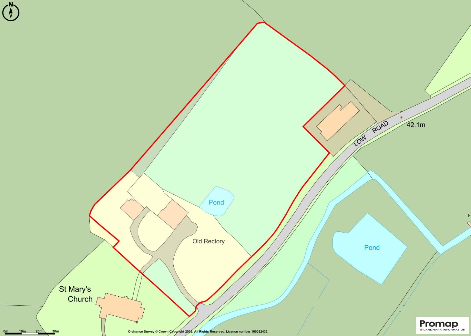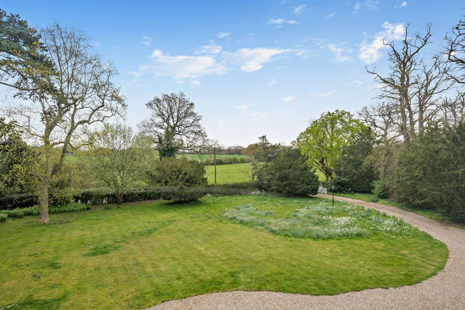 Outside, The Old Rectory is approached by a gravel drive leading to a gravelled sweep at the front of the house and continuing west to the two storey coach house containing some old stables, workshop garage, an office and an upstairs studio with shower room. Established mature gardens surround the property with extensive lawns and specimen trees including a rather magnificent copper beech which was reputedly planted to commemorate the Battle of Trafalgar in 1805. There is an area of mixed woodland to the north as well as two large ponds. To the rear of the property is a paved terrace with feature floor glass topped well and an enclosed formal walled lawn garden. The property enjoys countryside farmland views as well as a special vista of the neighbouring 15th century St Mary’s Church.