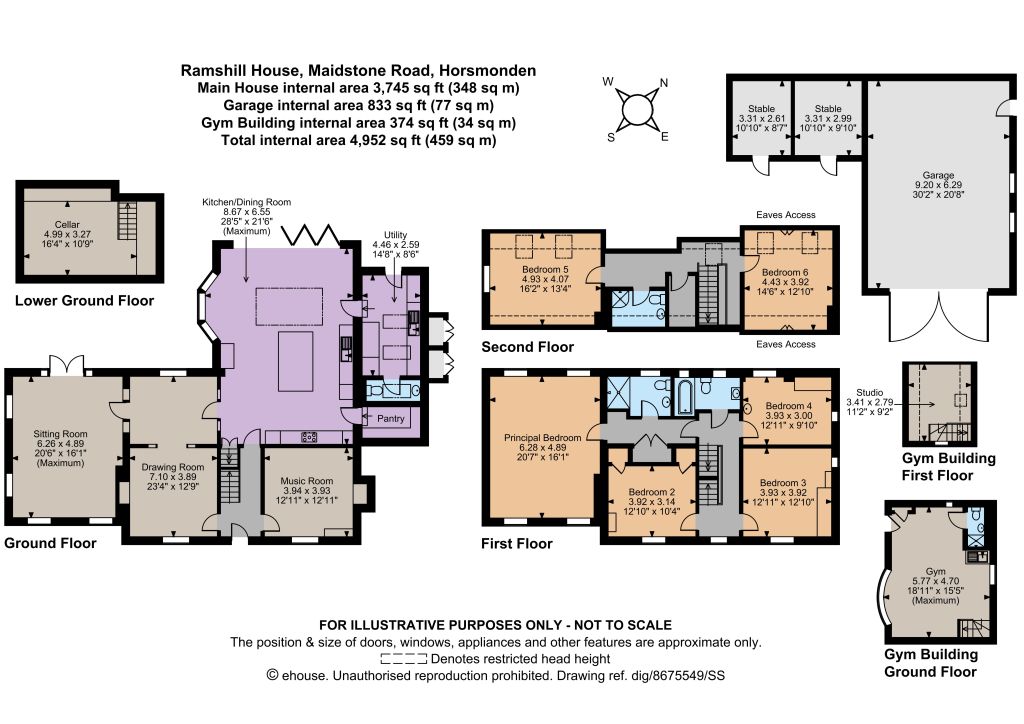 Ramshill House has an impressive approach. A bespoke electric double gate leads to a long drive that runs past a Hartley Botanic Victorian Style greenhouse and vegetable garden to a large detached garage and stables. This large building has much potential, subject of course, to planning permission. There is a gym and a studio.