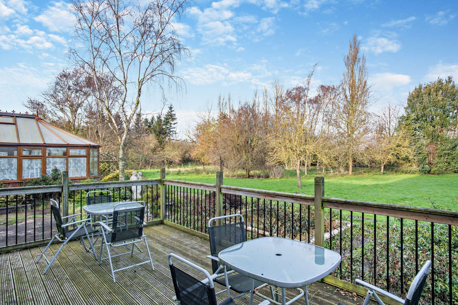 The home is approached via a large sweeping driveway and forecourt, giving access to the triple attached garages. It benefits from a considerable and established private plot surrounded by picturesque countryside. There are expansive wrap-around lush lawned gardens interspersed with a wide range of mature and evergreen trees and shrubbery and a raised decked terrace. A 48 ft. agricultural barn in good condition with a large attached store could serve a several potential uses.