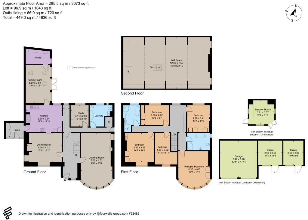 The house has been a much-loved family home for almost five decades, and has been passed down through the family. Internally it is elegantly presented in a traditional style well suited to the age of the property, with character features including a brick chimney breast housing the Rayburn, sash windows, parquet and tiled floors, and a pretty stained-glass front door. The ground floor is ideally laid out and separates formal living spaces from the family part of the home, with two generous reception rooms at the front to either side of the grand entrance hall, and a warm and welcoming kitchen, study, laundry room and family room to the rear. Upstairs there are five good-size double bedrooms and two bath and shower rooms on the first floor, and a large open loft space on the second floor which offers potential for conversion, subject to obtaining the necessary consents.