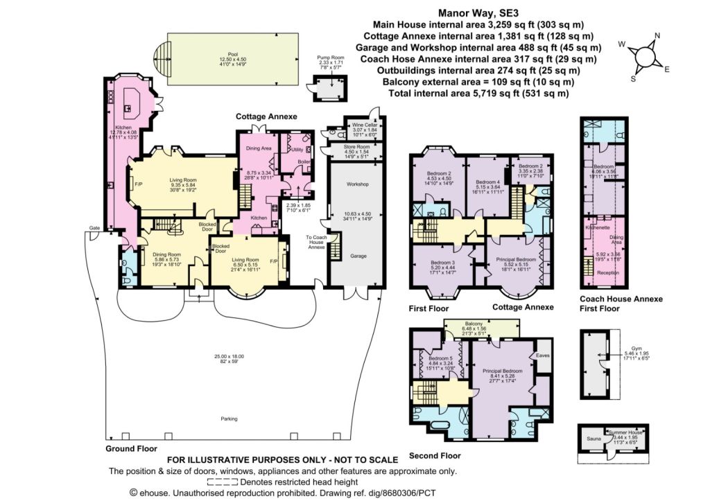 Terms Tenure: Freehold Council Tax: Band H EPC: D 16/07/2035 Services: Mains electricity, gas, water, drainage, (gas fired central Heating), (electric under floor heating in parts) Broadband /wifi: Fast Local Authority: Royal Borough of Greenwich Land Area: Approx 0.75Acres Fixtures and Fittings: Certain items are specifically excluded from sale, but may be available for sale by separate negotiation. Planning and Building Regulations: All necessary approvals, consents and sign offs have been sought. Alarm: Prestige zone alarm system fitted. Probate: A building under separation family ownership is expected to be folded back into the title Ref. TGL614161 before exchange of contracts. Viewings: strictly by appointment with Strutt & Parker. Covenants: certain legal covenants and rights of way pertain to the property. Address: Manor Way, Blackheath, SE3 9EF