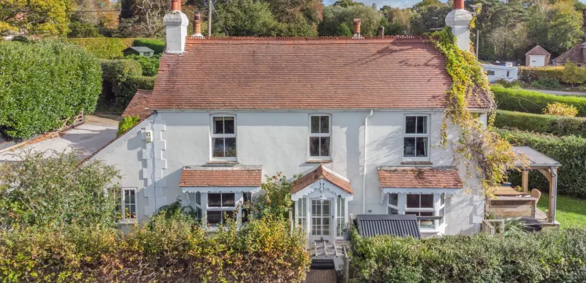 The Old Toll House is a splendid five bedroom detached period property, with original details and beautiful arts and crafts styling throughout. At the front are two sunny reception rooms with west-facing bay windows, the sitting room has panelled walls, built-in shelving and a cast-iron fireplace, and the study has wooden parquet flooring and a handsome fireplace, with woodburning stove. The hobby/playroom provides further space and features a bespoke mezzanine cubby area. Towards the rear is a light, open dining/family room with brick-built fireplace, bar and French doors to the rear garden, as well as a breakfast bar connecting to the kitchen fitted with shaker-style units, butler sink and an Aga. Upstairs are four double bedrooms, two with views over open fields, including the principal bedroom, with walk-in wardrobe. An additional walk-in wardrobe is on the first-floor landing, and the family bathroom with freestanding bathtub and separate shower unit is on the upper level. The annexe, with stripped wood panelling that creates a rustic cabin feel, offers one bedroom and a shower room, providing a cosy retreat.
