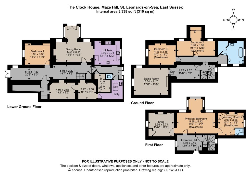Adjoining the principal bedroom there is also a snug and a dressing room with a shower and access to a WC. The main entrance at street level opens to the first floor, where there is a welcoming entrance hall and access to the staircase, leading down to the main accommodation.
