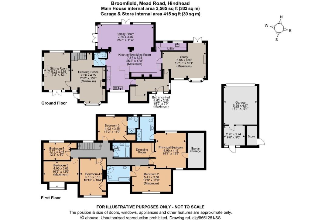 Broomfield is approached via a gravel drive providing parking and turning for several vehicles, leading to the rear tarmacadam drive and garage block and yard. The gardens and grounds are an attractive feature of the property and are well screened, offering a good deal of privacy and seclusion. The front and rear gardens are mainly laid to lawn with an abundance of mature and specimen trees and shrubs including an unusual Indian bean tree in the front “secret garden”; which also features an attractive old wall, adding character and charm to the outside space. Two terraces to the rear of the property are ideal for outdoor entertaining, the first accessed from the family room whilst the second is screened by the garden wall, giving a degree of privacy and creating a courtyard terrace. The detached double garage block with workroom and garden store, can be accessed through a gate from the front drive. A tarmacadam rear drive leads to the garage and hard standing area.