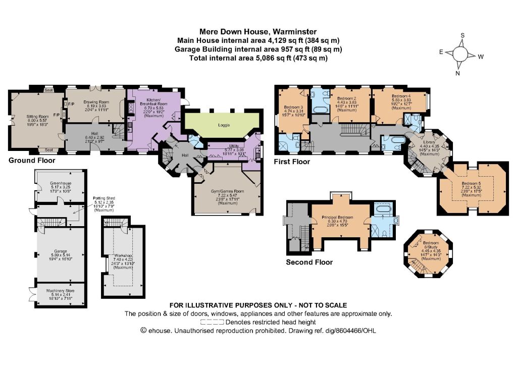 National Country House DepartmentCornwall Estate AgentsMere Down House is approached through an electric gate giving access to a large gravelled area. The original house was built between 1920 and 1922, although it was essentially almost completely rebuilt between l999-2004 with additions including a millennium tower, loggia, sitting room extension and top floor. The front door opens into a panelled entrance hall with antique marble floor, underfloor heating and main staircase to the first floor. Off the hall is a panelled sitting room with shutters to the windows, window seats, fireplace, wide polished French oak boards and double oak doors to the garden. The drawing room is also panelled with a fireplace and polished oak boards; a pair of glazed oak doors leads to the formal garden. A hatch opens through to the kitchen. The kitchen/breakfast room is the heart of the house and is perfect for family life with a four oven electric AIMS Aga and well fitted larder. Windows and external door are again shuttered. There are charming views across the garden. Completing the ground floor is a gym/games room, a large utility/boot room, full height baize-lined safe and downstairs cloakroom. These are linked to the main house via an octagonal hall in the base of the tower, which also contains the secondary staircase to library, bedroom and tower study/bedroom. The utility room and tower hall also benefit from underfloor heating. The main staircase with its pretty banisters leads to a polished oak boarded landing with two en-suite double bedrooms and heated airing cupboard. Completing the first floor is a further two double bedrooms, bathroom and shower room and library. From the landing a staircase leads to the master suite which includes a nursery/dressing area and a bath/shower room. Above the library the tower staircase leads to the study/further bedroom.