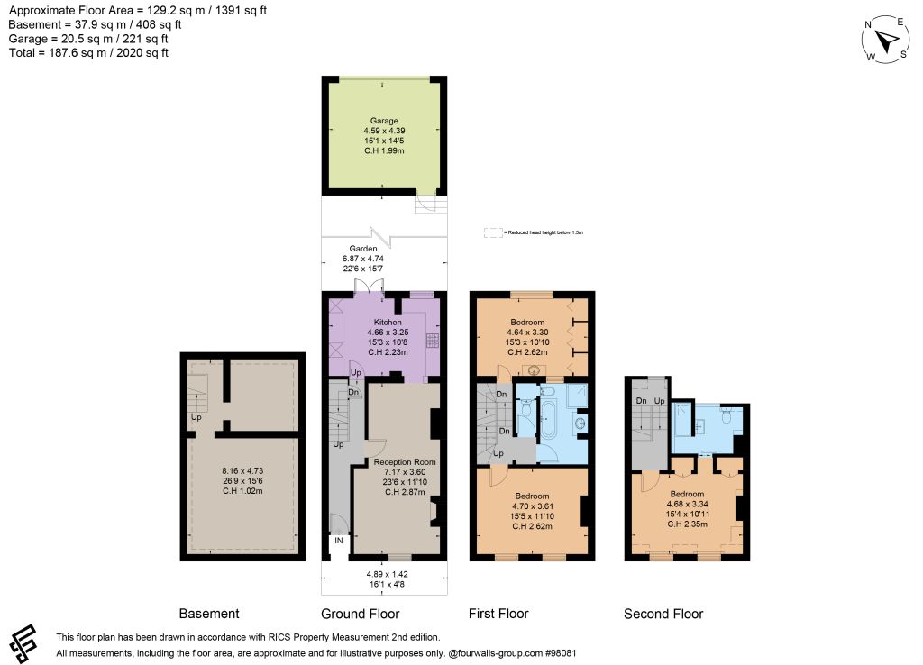 The house is set over three floors with the main section of the house covering 1,391sqft. The ground floor consists of a double reception room which leads through to the modern eat-in kitchen and benefits from access to the garden. To the rear of the garden there is a large garage (221 sqft) which benefits from a remote access door on to Hofland Road. On the first floor there are two double bedrooms a separate WC and bathroom. The second floor is dedicated to the principal bedroom which is flooded with light and offers a lovely en-suite shower room.