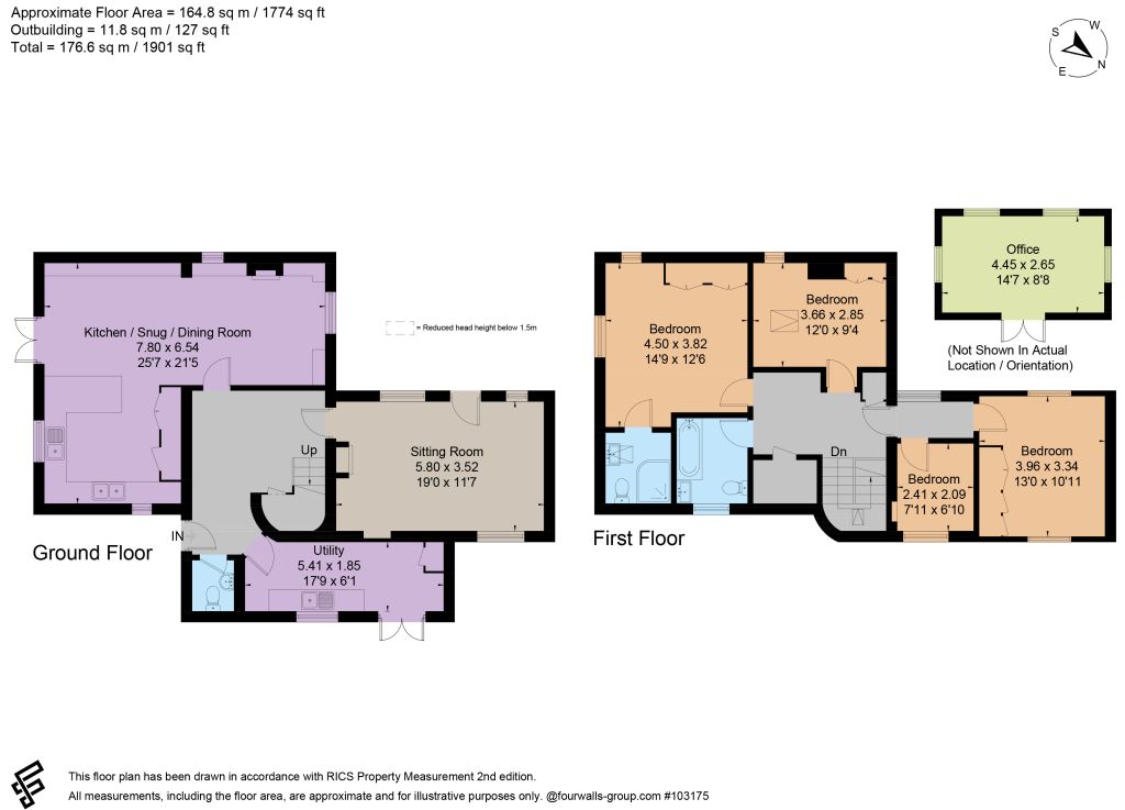 On the first floor, the principal bedroom enjoys pleasant views across the surrounding countryside and benefits from its own en suite shower room. Three further bedrooms are all well proportioned and are served by a spacious family bathroom, making the property ideally suited to family occupation, visiting guests or flexible home working arrangements.