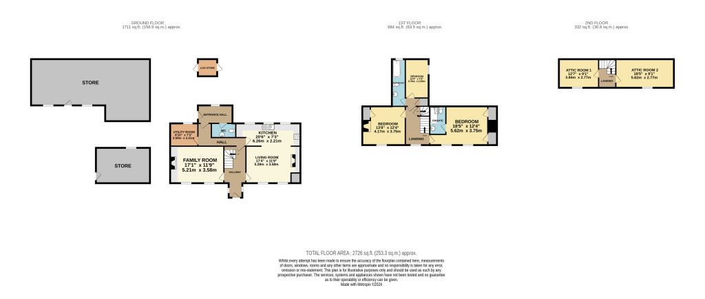 Upstairs, the farmhouse offers three double bedrooms, two childrens bedrooms, a family bathroom and two attic bedrooms. The master bedroom benefits from an en suite. Downstairs, the farmhouse comprises of a large living room and kitchen diner, a utility room and a small WC.