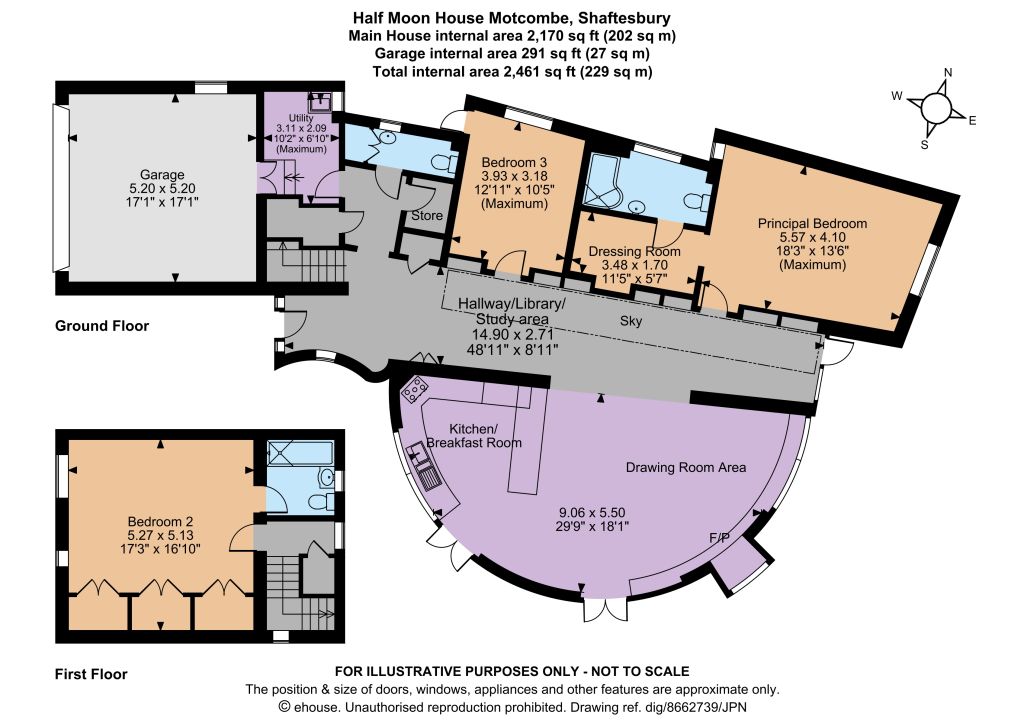 Half Moon House is entered via a set of steps that lead up to a bespoke oak front door. Beyond lies an entrance hallway with stunning library/study area which is illuminated by skylights overhead. This inviting circulation space gives access to the study bedrooms, bath and utility rooms.