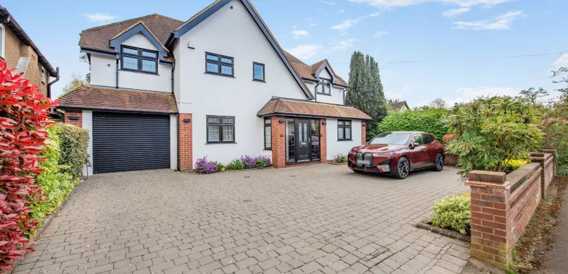 The heart of the home is the L-shaped, open-plan kitchen, dining area and family area, which connects to the garden via bi-fold doors, welcoming plenty of natural light to the space. The kitchen has sleek, minimalist units to base and wall level, as well as integrated appliances, including triple ovens and a gas hob with an extractor overhead, while the living and entertaining area has space for both a large family dining table and a seating area. Further ground-floor living space includes the private study and the 26ft reception, which also has bi-folds opening to the rear garden. a guest cloakroom and a utility room. A turned staircase leads to the first-floor landing, there are four immaculate double bedrooms, each benefitting from a south-facing aspect overlooking the rear garden. Three of the bedrooms feature built-in wardrobes, while the principal bedroom has a dressing room and an en suite shower room with a walk-in shower. One further bedroom is en suite, while the first floor also provides access to the family bathroom with its freestanding bathtub and separate shower.