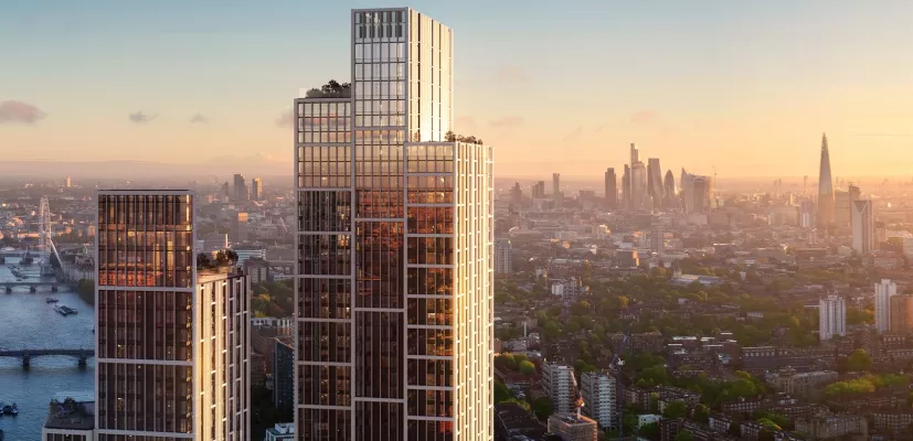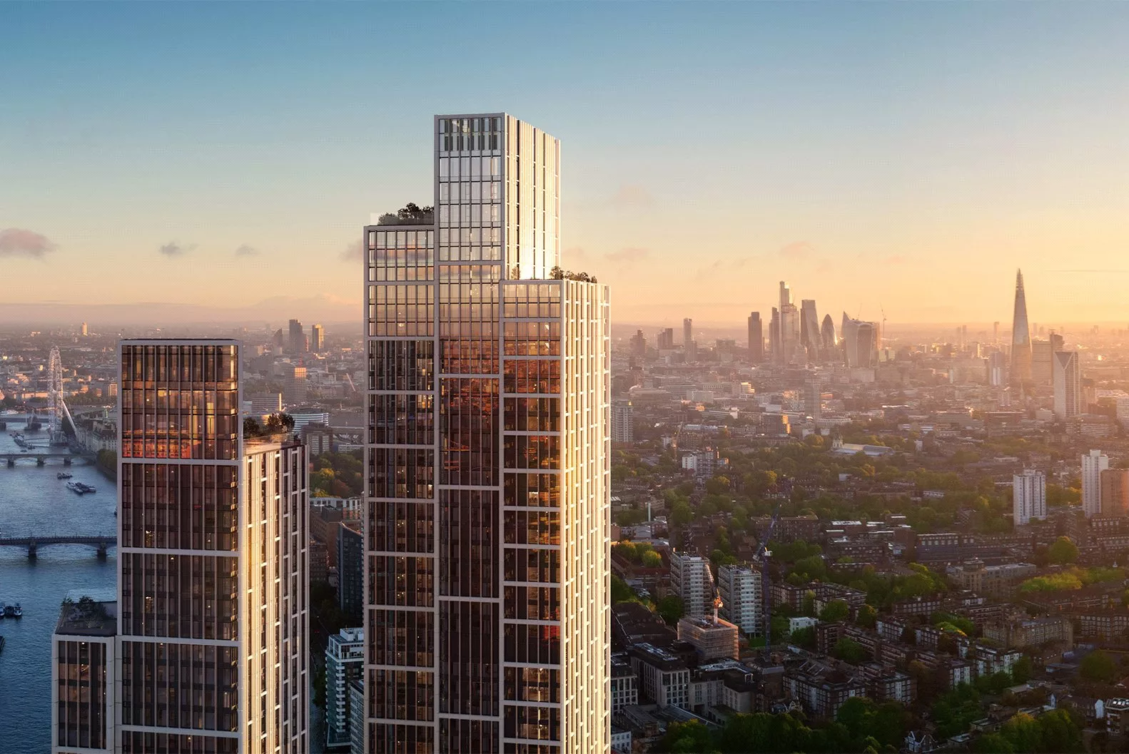 In the heart of Nine Elms, River Park Tower stands majestically at 200 meters. Comprising 57 stories and 334 exclusive private apartments, making it one of the tallest residential developments in Europe. Discover a spectacular new way to live in London's largest and most electrifying regeneration area, Nine Elms. River Park Tower apartments offer a refined sanctuary with natural materials, oak flooring,and marble surfaces. The kitchen features oak veneer cupboards, brass handles, and premium appliances from Miele and Siemens. Soft neutral tones create a serene ambiance. Enjoy year-round comfort with zoned underfloor heating and separate temperature controls. The bathrooms provide a contemporary spa-like experience with marble finishes and mirrored cabinets. Experience exceptional residence amenities at River Park Tower, including a state-of-the-art fitness centre with gym and studio, business lounge, multimedia and business rooms, play area, winter gardens, and the 56th-floor Sky Terrace with awe-inspiring views.