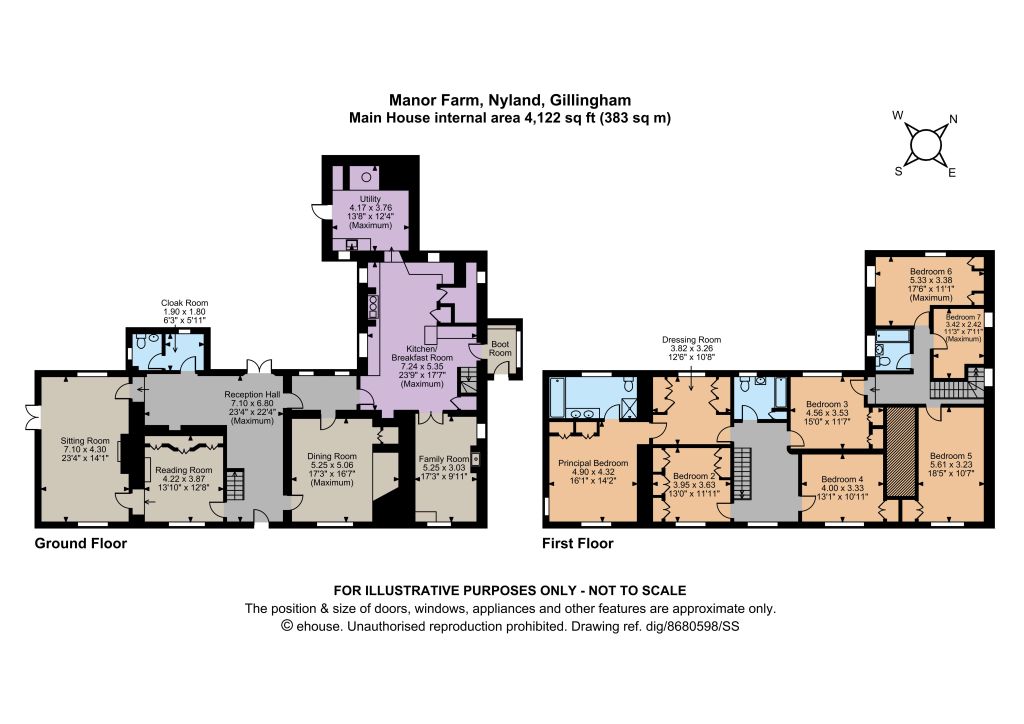 Upstairs the principle bedroom has a substantial dressing room and en suite bathroom. There are a further five double bedrooms and a single bedroom which are served by two family bathrooms.