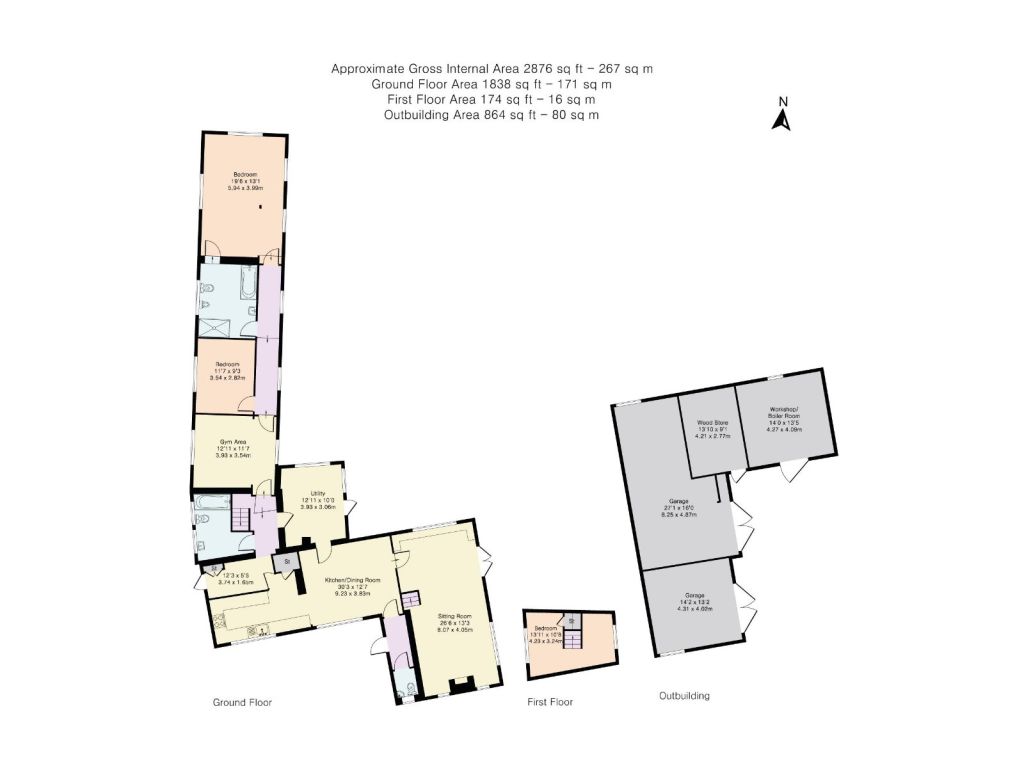 Sitting room | Kitchen/dining room | Utility/boot room | Bedroom one with en-suite bath/shower | Bedroom two | Gym/bedroom three | Family bathroom | Study/hobbies room | Cloakroom| Barn garaging | Wood store | garden | EPC rating E