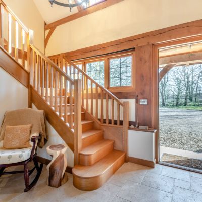Mannering House is a beautifully crafted family house built in the vernacular style around a solid oak frame by Oakwrights. With exposed timbers and a Kent peg style tiled roof, the house provides the character found in an older building but with the conveniences of a modern home. Completed in 2011, careful thought has gone into the design of the house to ensure it caters for the requirements of family life in great comfort.