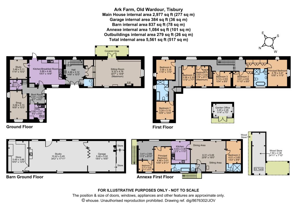Ark Farm sits at the end of a lane, which winds through the castle grounds and then leads on to its own track, which leads to both the house and barn annexe. There is plenty of parking space between the house and barn, as well as covered parking in a double garage within the barn building. The gardens and grounds surrounding the house are truly stunning and include wildflower meadows, a large pond and the picturesque lake with the castle ruins beyond. There are well-maintained lawns as well as a variety of mature trees, established shrubs and hedgerows, plus a vegetable garden and patio seating areas for al fresco dining. Further outbuildings include a wood store/boathouse and a garden office.