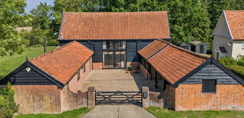 Positioned in the sought-after village of Framsden, The Old Oaks is a spacious, timber-framed and brick barn conversion offering beautifully presented and light-filled accommodation arranged over two floors. With a wealth of period features throughout, including exposed beams and vaulted ceilings, the whole creates an ideal home for those looking for a quiet, rural home with far-reaching countryside views.