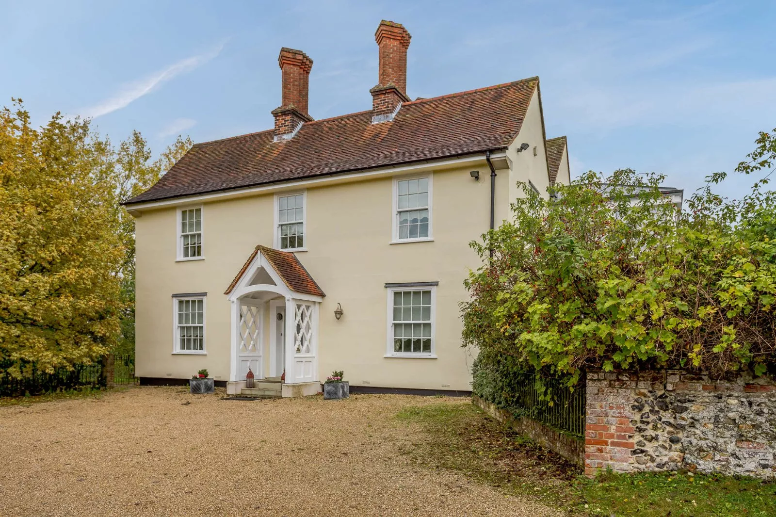 Positioned in what is named in the Domesday Book as Claret, a settlement in the hundred of Hinckford and the county of Essex, the property itself is believed to have been formally known as Claret Manor which dated to at least the 17th century, possibly much earlier, and once belonging to the de Clare family, now Claret Hall; a beautifully presented country home, built in the early part of the 20th Century. This fine home is positioned amongst mature trees and surrounded by open countryside, enjoying far reaching views, whilst also being within easy reach of the popular village, Clare. Built in an attractive Georgian style with accommodation extending to over 3,000 sq ft, the house is approached over a private drive owned by the adjoining farm leading to a gravelled driveway and turning area at the front of the house.