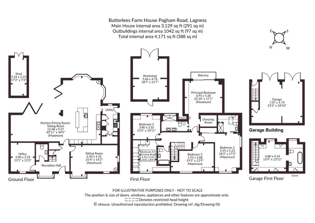 Outbuildings comprise a timber workshop with options for storage of small water vessels and water sports equipment, whilst a shed provides a home for garden paraphernalia.