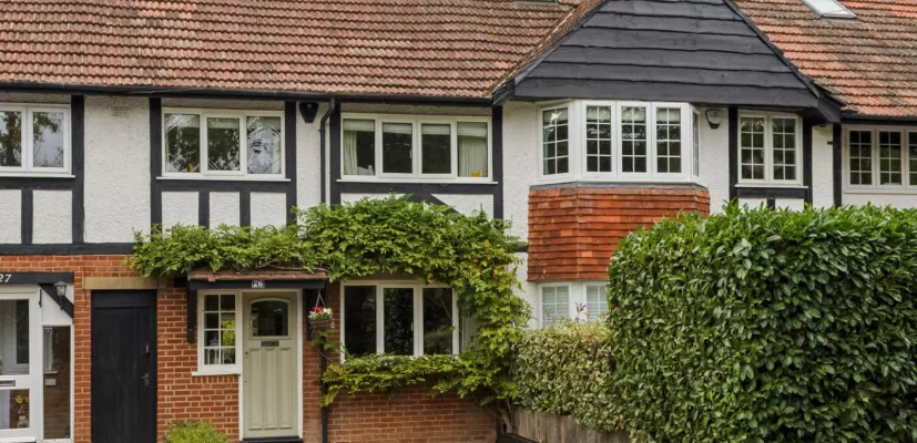 Outside The house has an attractive traditional façade with an established wisteria and gravel driveway with parking for one car. A side passage provides access to the impressive 160ft garden. Originally an orchard, it features beautiful fruit trees, mature hedging and a range of attractive shrubs and perennial planting. A paved terrace with pergola and a bar area provides a charming space for relaxing and entertaining. There is also a garden shed and summer house to the rear which has power and WiFi and could be used as a home office/playroom/gym.