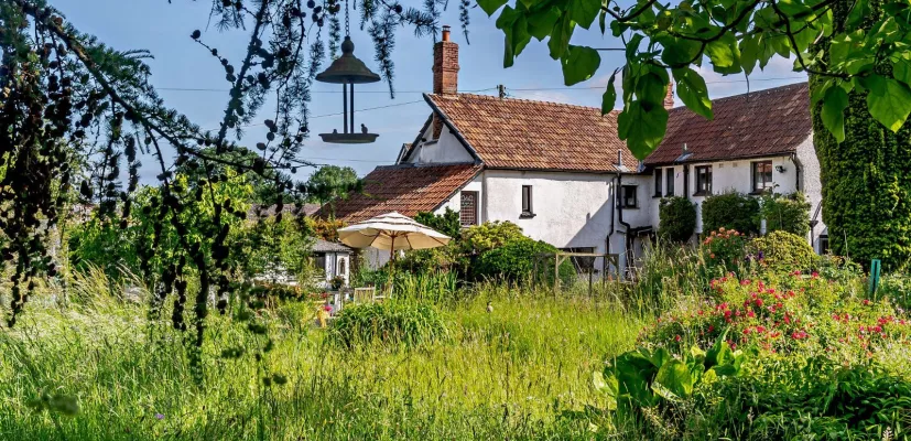 A detached cottage with over half an acre of tranquil gardens, in the Exe Valley