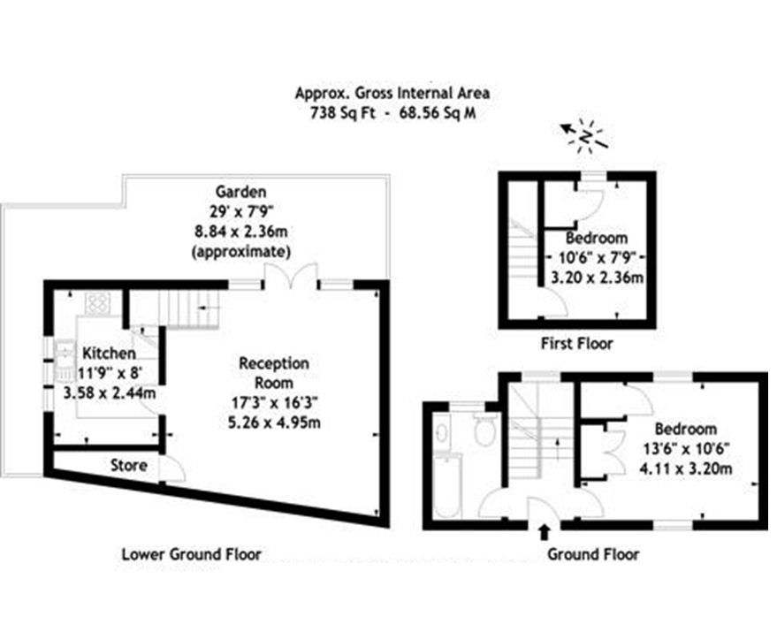 The property is in excellent decorative order throughout, with accommodation arranged over three floors. There is a generous reception room with wood flooring and French doors leading onto the garden behind; a modern, neutral kitchen; two bedrooms with storage; and a bathroom.