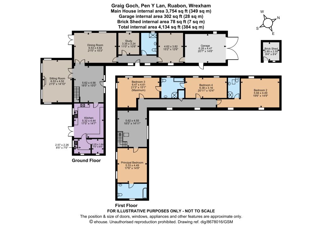 Upstairs, the spacious landing area leads to four well-presented double bedrooms. These include the well-proportioned principal bedroom with its en suite bathroom. One further bedroom has an en suite shower room, while the third and fourth bedrooms share a Jack and Jill bathroom with a bathtub and a separate shower unit. On the ground floor there is a shower room with a walk-in shower.