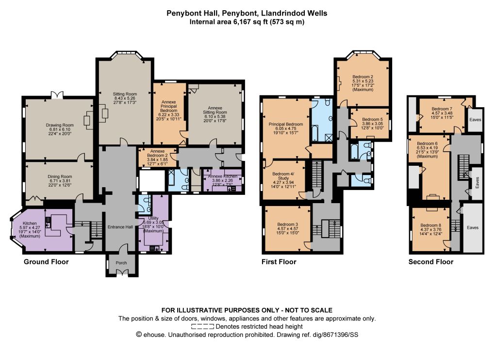 The accommodation is arranged as a main house and a self-contained annexe, with the grand main entrance leading to a welcoming reception hall with ornate decorative detailing and rich wood internal doors. The 27ft sitting room is located at the end of the reception hall, with its half-panelled walls, tall bay window and grand fireplace fitted with a log burner. The room is currently used as a billiards room, and features billiards pendant lighting at its centre. The ground floor also has a beautifully appointed formal dining room and a spacious, dual aspect drawing room with a fireplace, full-height windows and French doors opening to the garden. The kitchen is located towards the front of the home and is fitted with bespoke solid oak faced units with granite worktops and integrated appliances, while offering space for a breakfast table or seating area, sliding glass doors open onto the garden. There is also a well-proportioned utility room providing additional storage and space for appliances. There are five bedrooms on the first floor and family bathroom, including a generous principal bedroom with a walk-in wardrobe and an en suite bathroom, plus an adjoining bedroom which is ideal as a study or a dressing room. Three further rooms are located on the second floor, these could be used as bedrooms or storage, as well as substantial eaves storage space.