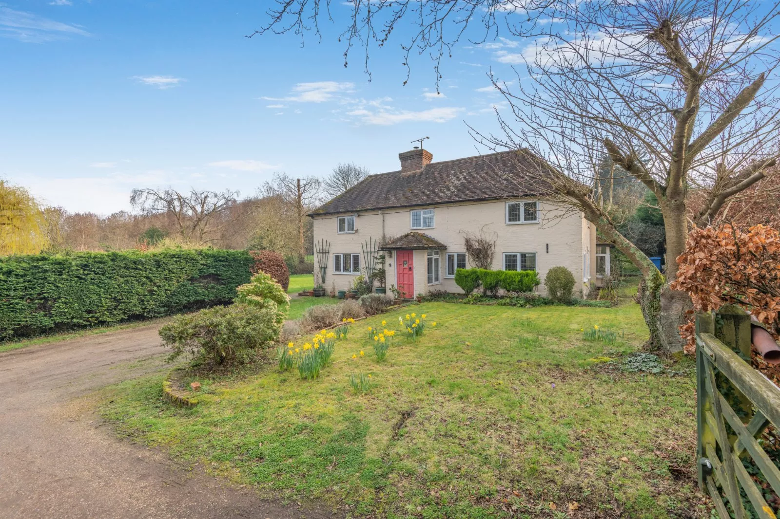 Beyond the garden, the property includes an area of woodland and paddocks.