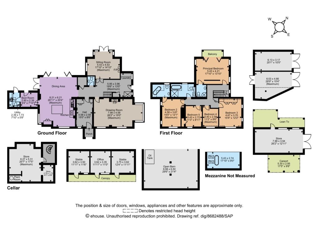 There are five bedrooms on the first floor. The principal suite has a mezzanine bathroom above as well as an en suite shower room, and a private balcony with undulating country views. Bedroom 2 also benefits from en suite facilities, whilst the remaining bedrooms are served by a family bath and shower room.