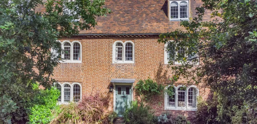 Pinnock Farm House is a handsome Grade II listed property. We understand the house was built in 1703 and is one of five remaining original farmhouses featuring the classic Dering windows indicative of the former Dering estate in Pluckley. It features attractive red brick elevations adorned with arched stone-mullion windows, while inside, character details include exposed timber beams and impressive brick-built fireplaces.