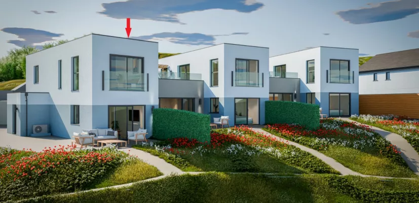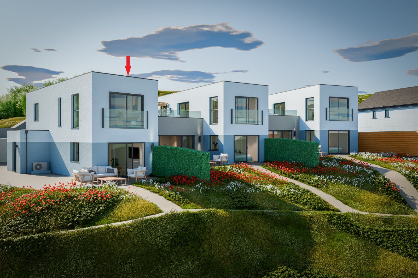 The main living space consists of a large open plan kitchen/sitting/dining room with glass doors leading out to a terrace with panoramic sea views. The principal bedroom is on the 1st floor, benefitting from a dual aspect allowing for plenty of natural light and a Juliet balcony that overlooks the sea. There is a further generous double bedroom to the rear, with both bedrooms serviced by a contemporary family bathroom with shower, washbasin and toilet. Completing the accommodation is a useful cloakroom on the ground floor.