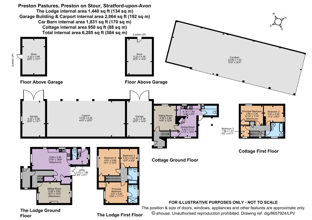 Preston Pastures is approached from a quiet country lane just outside the attractive hamlet of Preston on Stour. A tree lined drive leads to the house through its own paddocks and grounds. Adjacent to the house is a large courtyard with a range of buildings including two garages an open bay cart shed with store rooms above and a large seventy-six foot barn together with a further well maintained two/three-bedroom cottage. The house is framed by its attractive gardens which include a well-stocked kitchen garden with a greenhouse, a productive orchard, and well screened and private gardens with far reaching views over its own paddocks. The house and buildings are totally private with no rights of way over any of the land. At the entrance gates there is an extremely attractive Lodge House incorporating three bedrooms, two bathrooms and two reception rooms with its own private gardens which is available by separate negotiation.