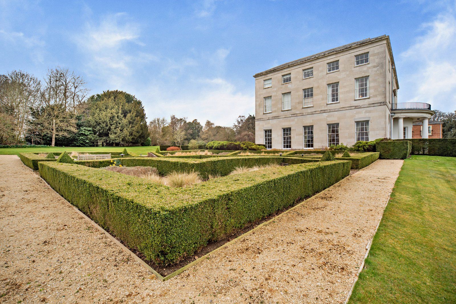 Formerly known as Purley Park, this distinguished Grade II* listed Portland stone mansion was originally designed by the celebrated architect James Wyatt and completed in the early 1800s. Steeped in history, the property once fell into disrepair but was meticulously restored and transformed by renowned developers T.A. Fisher under the watchful guidance of Historic England. Completed in 2006, the grand mansion was sensitively divided into just three exclusive residences. No. 1 Purley Magna is the largest of the three— boasting its own private main entrance framed by the striking, original columned porte-cochere, and the sole use of the magnificent semi-circular, covered rear terrace adorned with Doric columns. Interior Elegance - Step through the grand entrance hall and be immediately struck by the vast scale— soaring ceilings, architectural columns, and a gracious sense of flow throughout. Three principal living areas radiate from this central space: The Drawing Room – Accessed via impressive mahogany doors from the hallway and dining room, this beautifully proportioned space boasts an original grand fireplace, with exquisite detailing, and opens beneath a grand Doric-columned portico. The Dining Room – Exceeding 600 sq ft, this opulent room features elegant sash windows, with original shutters and shutter boxes; a stately Georgian fireplace; and Georgian style French doors that open onto the terrace—perfect for entertaining. The Kitchen – A statement in design, this bespoke kitchen by Simon Taylor Furniture (a former associate of Linley) marries cutting-edge luxury with timeless craftsmanship. Concrete quartz worktops, tall stainless-steel cabinetry, Gaggenau and Miele appliances, and a concealed television within the drinks station blend effortlessly beneath intricate cornicing. Art Nouveau-style Louis Comfort Tiffany– inspired stained glass panels add a touch of colour and character. Bedrooms & Private Quarters - The northwest-facing principal suite is a sanctuary of elegance, complete with original period features, a luxurious en-suite shower room, and a mezzanine level currently configured as a small office and sewing room. Descending via a bespoke Neville Johnson staircase, the lower-level houses three generous double bedrooms—one with a bespoke Simon Taylor Furniture en-suite, and two served by a large family bathroom with both a bathtub and separate shower.