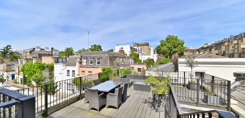 South Kensington Estate & Letting AgentsThe property offers 3 large double bedrooms arranged along a corridor that extends out to a large roof terrace above a cobbled mews with lovely views. A large open plan dining room and kitchen follows into a bright living room that has large glass doors onto the terrace. these doors allow floods of light.