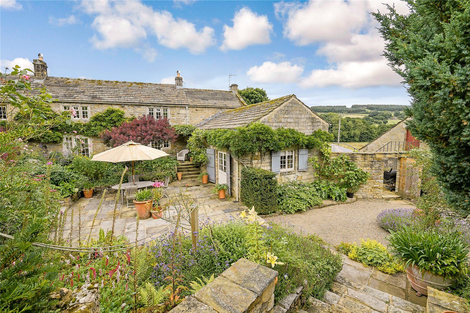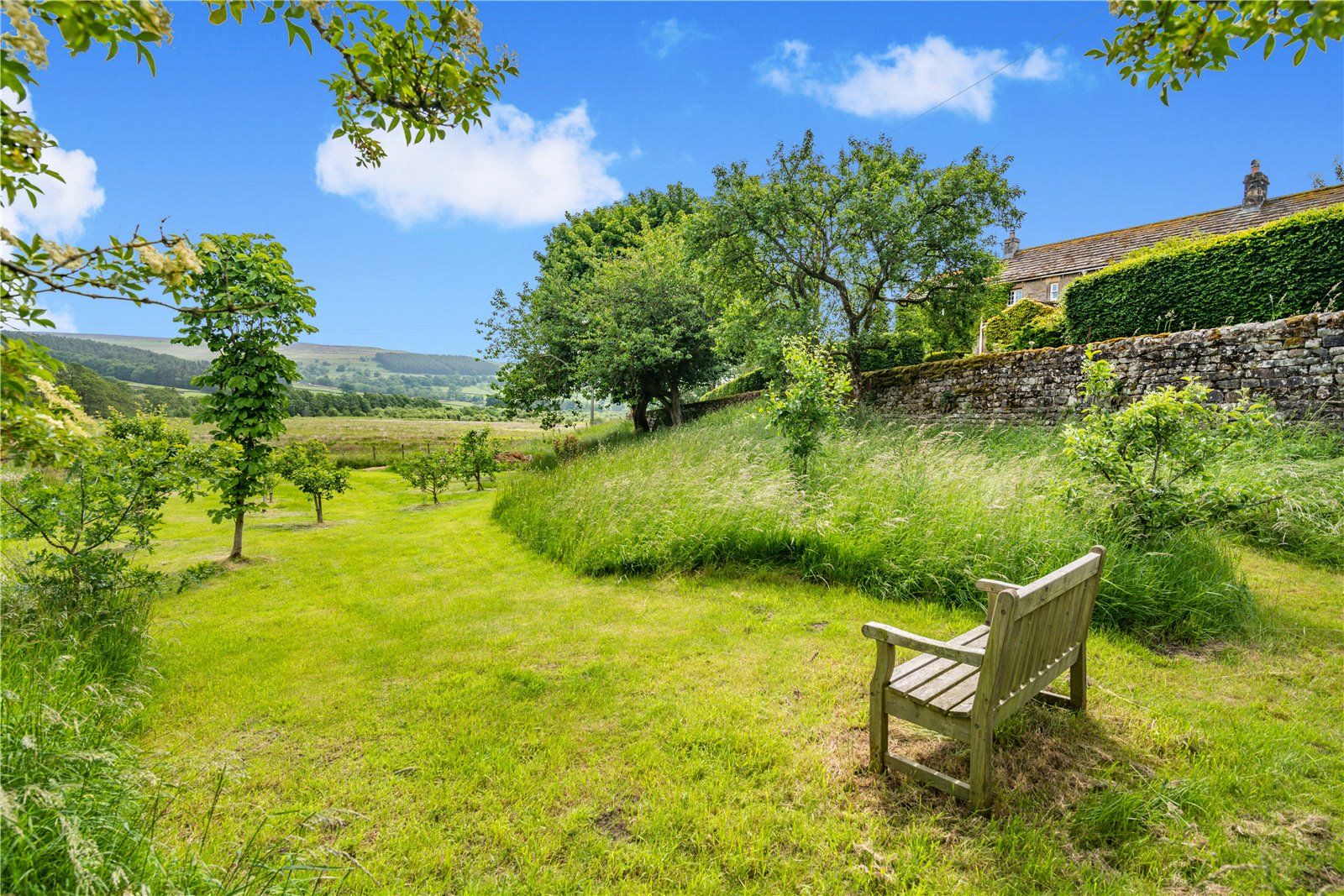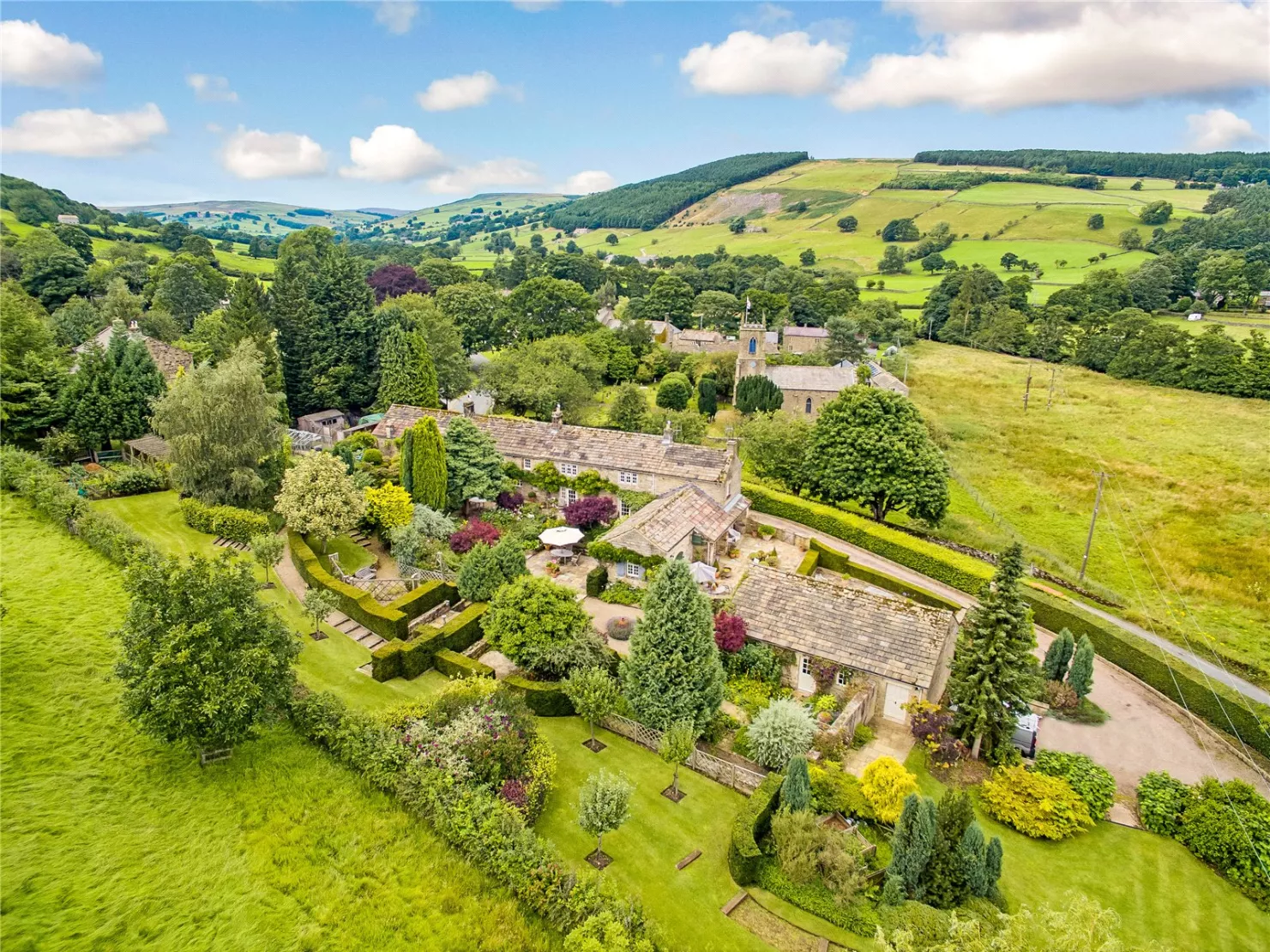 The property is set within approximately five acres, including a hillside paddock and thoughtfully landscaped gardens. A large terrace enjoys far-reaching views towards the reservoir, with further areas for outdoor entertaining, a summerhouse and a range of outbuildings and a wine store. Adjacent is a fantastic south facing garden which has been extremely well planned and landscaped with terraces, with a mass of well stocked shrub and flower beds which are separated by paths and steps. These lead to lawns looking out to rolling fields and round to the gravelled drive and electric gates. To the west of the property is a large gated vegetable garden with two garden sheds, good size greenhouse, log store and access to the lane beyond. In recent years the owners have created an orchard in a paddock between the property and the village church.