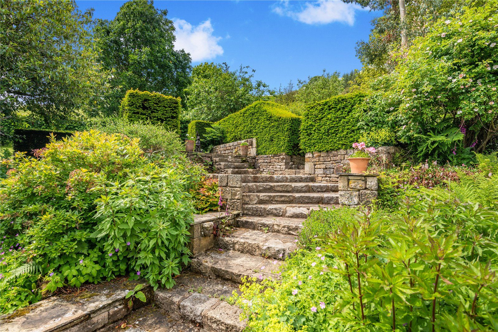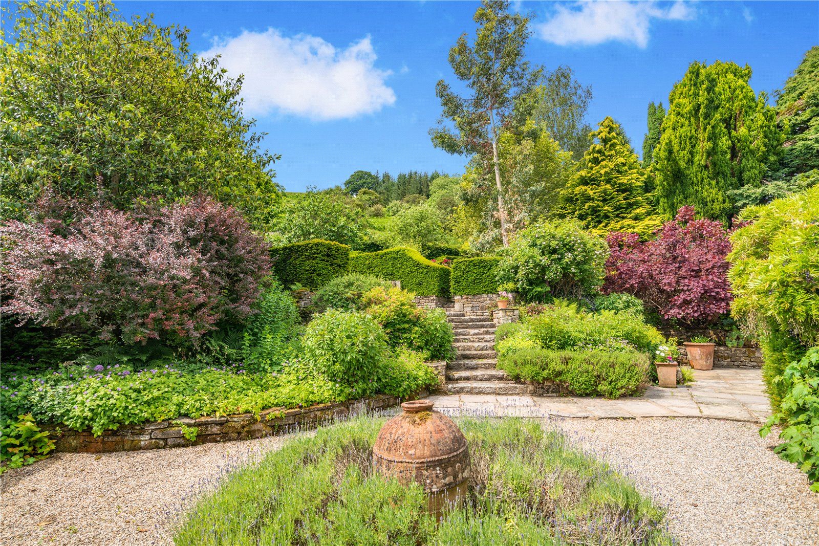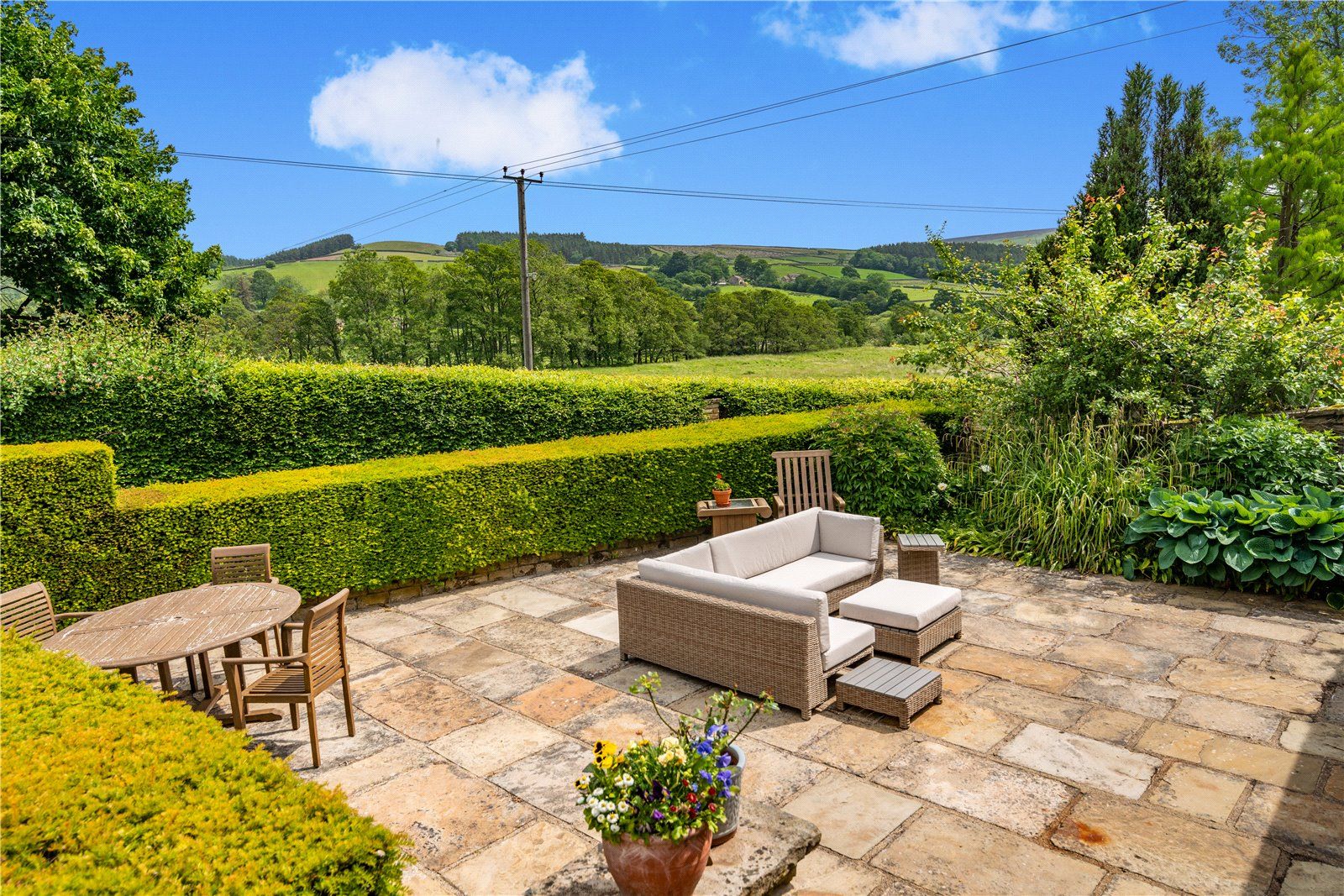 The property is set within approximately five acres, including a hillside paddock and thoughtfully landscaped gardens. A large terrace enjoys far-reaching views towards the reservoir, with further areas for outdoor entertaining, a summerhouse and a range of outbuildings and a wine store. Adjacent is a fantastic south facing garden which has been extremely well planned and landscaped with terraces, with a mass of well stocked shrub and flower beds which are separated by paths and steps. These lead to lawns looking out to rolling fields and round to the gravelled drive and electric gates. To the west of the property is a large gated vegetable garden with two garden sheds, good size greenhouse, log store and access to the lane beyond. In recent years the owners have created an orchard in a paddock between the property and the village church.