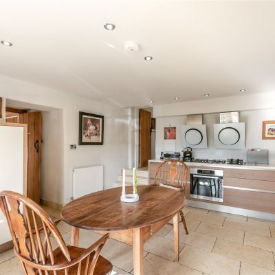 The principal staircase rises to the first floor, where there are two generous double bedrooms, including a particularly well-proportioned principal bedroom with en suite bathroom. A further bedroom is served by a contemporary shower room. The one-bedroom annexe provides excellent ancillary accommodation, comprising an open-plan kitchen and sitting room with wood-burning stove. It is accessed from a separate drive and has double gates into a gravelled parking area.
