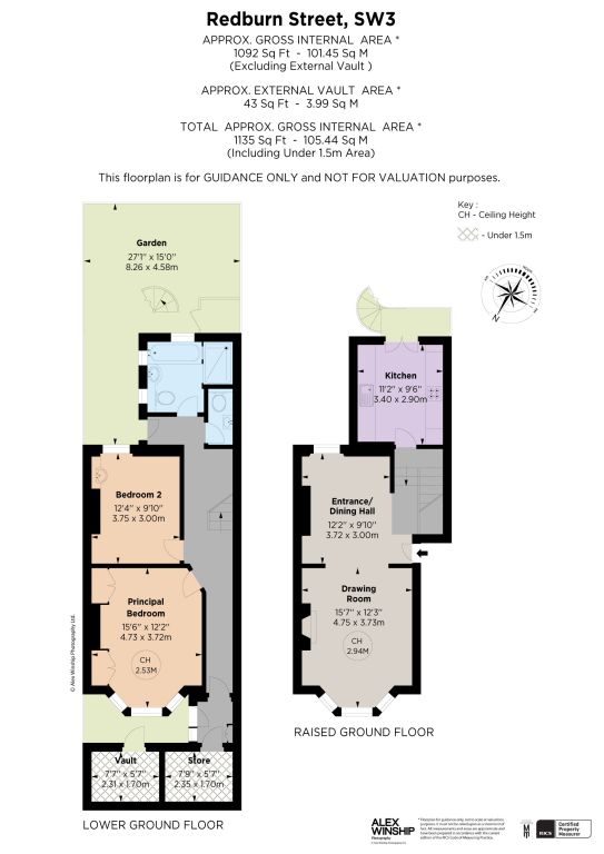 On the lower ground floor, the flat offers two good double bedrooms, a large bathroom and separate cloakroom. There is a door to the garden from this floor and also access to an internal vault, ideal for storage.