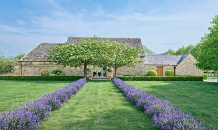 A beautifully converted Cotswold barn offering impressive open-plan living and five ensuite bedrooms