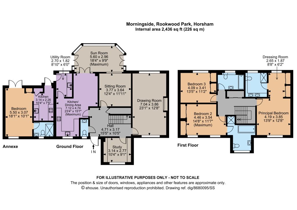 The property is situated in a sought-after residential area, backing onto Horsham’s Rookwood Golf Centre, and within two miles of Horsham’s mainline station (London Victoria, approximately 55 minutes). This historic market town offers a comprehensive range of shops and facilities, including a John Lewis and Waitrose, Swan Walk shopping centre, The Carfax, with its cobbled streets and varied restaurant quarter; Horsham Park and Pavilions Leisure Centre, and Horsham Sports Club, incorporating cricket, tennis, hockey and squash clubs. The A24, M23 and wider motorway network are close by giving access to London, Gatwick, Heathrow and the south coast. There are also a number of excellent state and private schools in the area, including Christ’s Hospital, Millais and Forest schools, Tanbridge School, Farlington, Pennthorpe, Brighton College Prep Handcross, and Cottesmore.