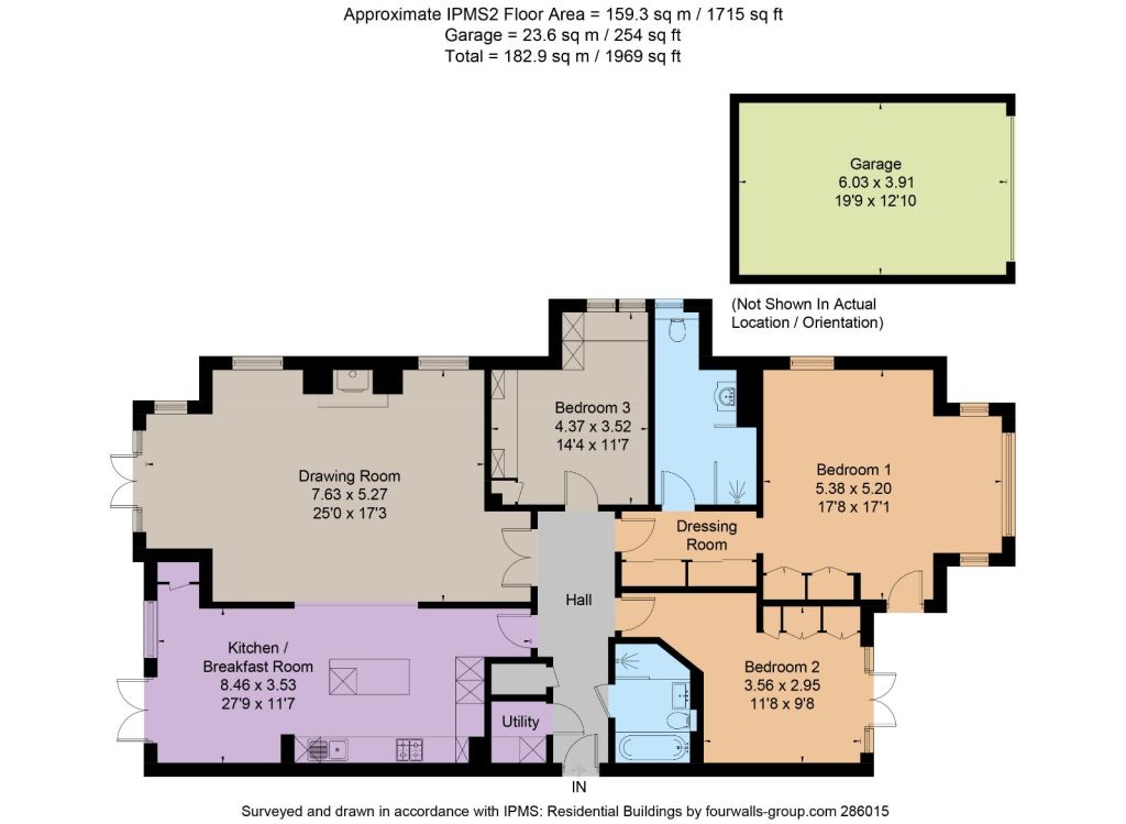 Entrance Hall, Living/Dining Room, Kitchen/Breakfast Room, 3 Double Bedrooms, 2 Bathrooms, Private Patio & Garden, Communal Gardens, Garage,