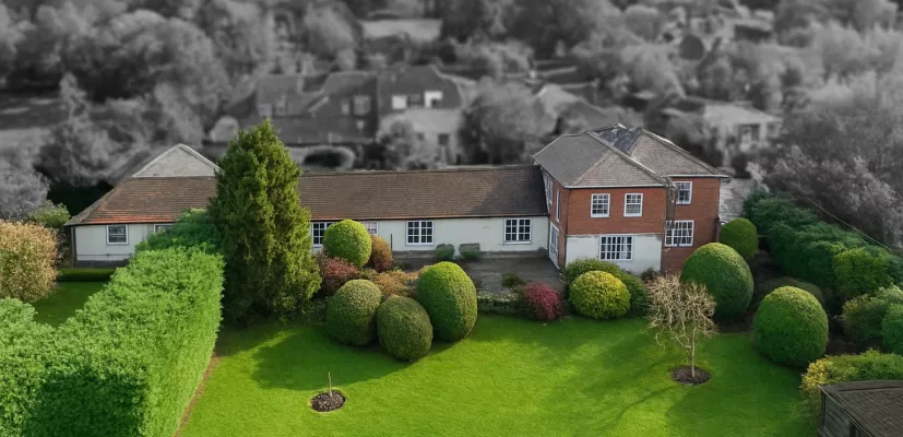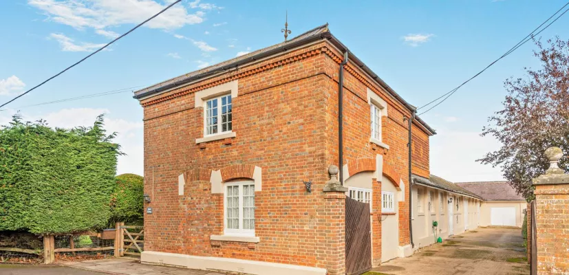 Stable Cottage is a splendid period residence, converted from a coach house and Victorian stable block and offering more than 4,000 square feet of flexible living space. The accommodation retains various attractive original details and could benefit from modernisation in places, but offers the potential for use as one large family house or as a main home with separate, self-contained accommodation. The main entrance to the home leads to the well-proportioned sitting room, which has a triple aspect, including west-facing French doors opening to the beautiful rear garden. The room has a handsome feature wall with exposed brick and timber framing, a fireplace and plenty of space for a family seating area. Stairs lead from the sitting room to the first floor, where there are three double bedrooms, including the large principal bedroom with its dressing room and en suite bathroom. The first floor landing also has access to a family bathroom. Off the ground-floor entrance hall there is also a utility room and a shower room, plus a formal dining room and the generous kitchen and breakfast room with its exposed brickwork and beams, farmhouse-style fitted units, central island and Aga, as well as modern Bosch integrated appliances and French doors to the garden. A rear hallway connects the kitchen and breakfast room to the comfortable drawing room, which provides the connection between the two ground-floor living areas. It features French doors opening to the garden, as well as double doors to the second kitchen and open-plan living area, which has a light and airy feel with its vaulted ceiling and exposed timber eaves. The central stove with its brick-built guard and stone hearth divides the room, with a large seating and dining area to one side and a well-equipped kitchen with wooden units and integrated appliances to the other. Stairs lead to a mezzanine level, where there is a bedroom or study area with skylights and eaves storage. Further rooms, plus a family bathroom, can be found to the north end of the property, beyond the open-plan kitchen and sitting area. They include an office with a kitchenette, which could be converted to a bedroom with an en suite bathroom.