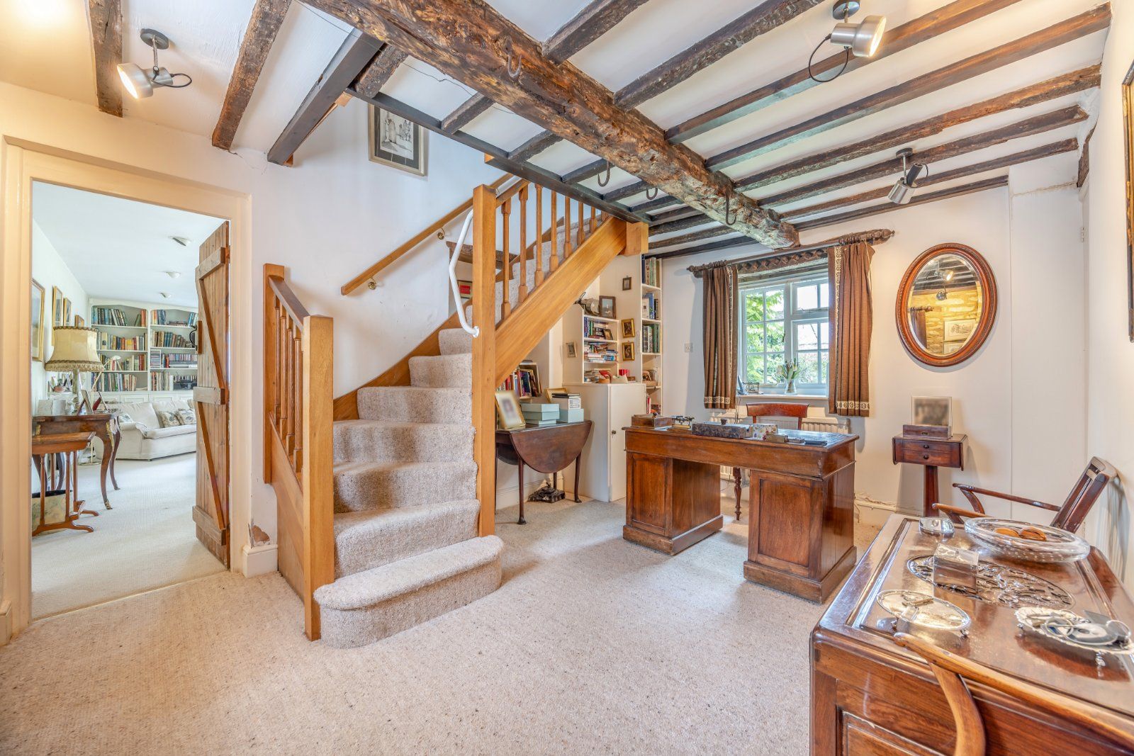 The Forge is believed to date back to the early 18th century and is well-proportioned with good ceiling heights throughout. The reception hall creates an excellent first impression, as does the large, double aspect sitting room with its open fire and French doors onto the rear south facing terrace. The dining room is a good size and sits next to the fitted kitchen. A large study, which houses the original forge, separate shower room and utility room complete the accommodation on the ground floor. Upstairs there are three large double bedrooms, one of which is en suite, and a family bathroom. The Forge is listed Grade II.