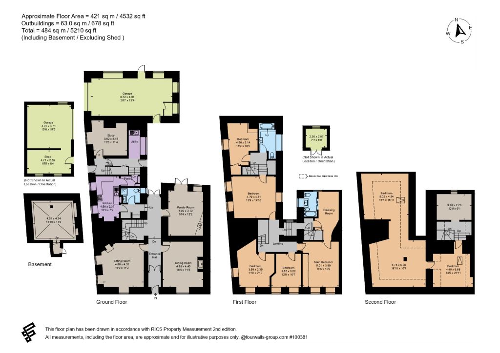 The first floor offers well-balanced and versatile accommodation. A substantial principal suite runs across one side of the property, incorporating a spacious bedroom, dressing room, and bathroom. Three further bedrooms are accessed from the main landing.