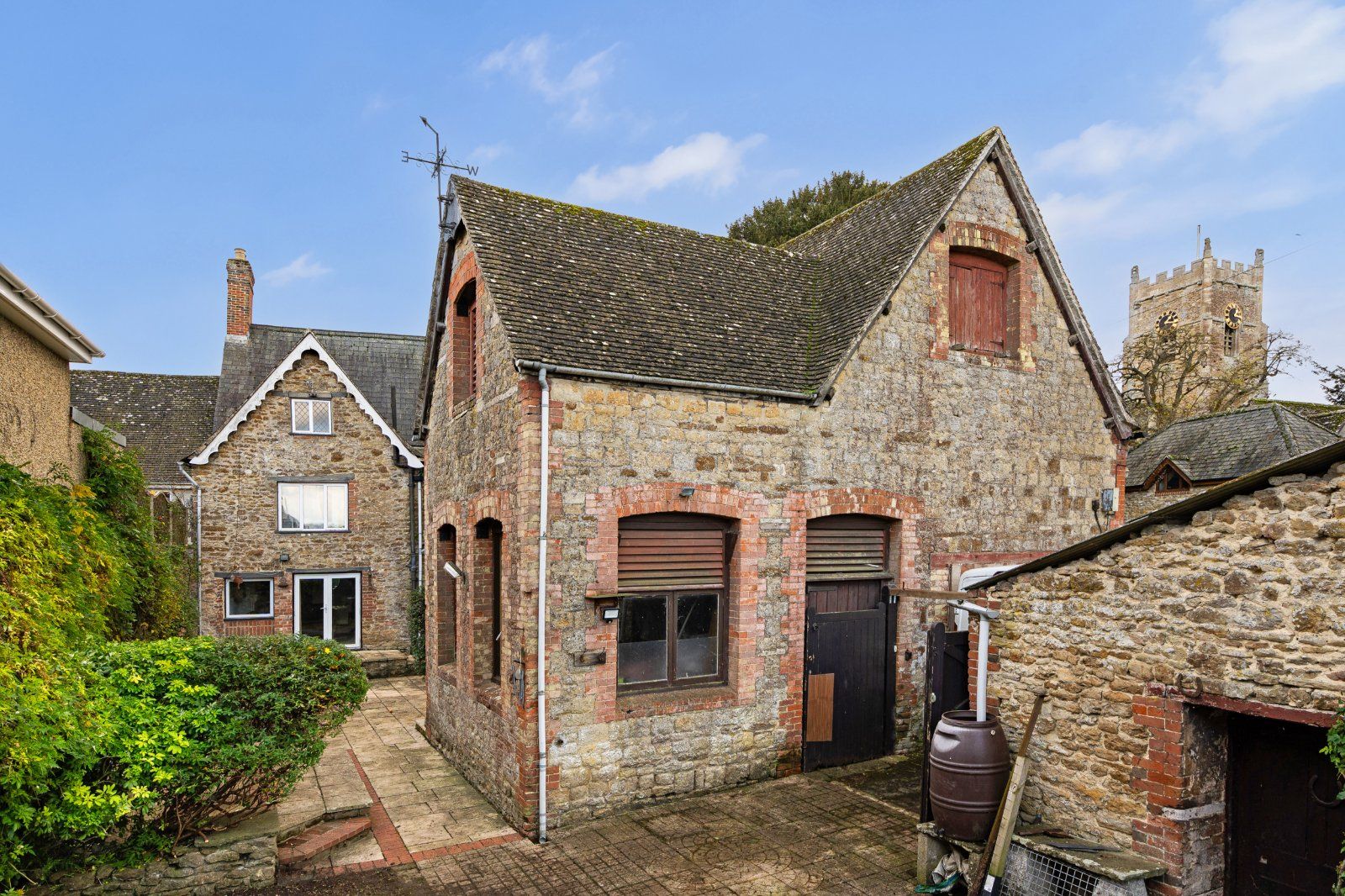 Church House benefits from an extensive range of outbuildings. These include a garage with vaulted ceiling and a detached stone outbuilding formerly used as stables.
