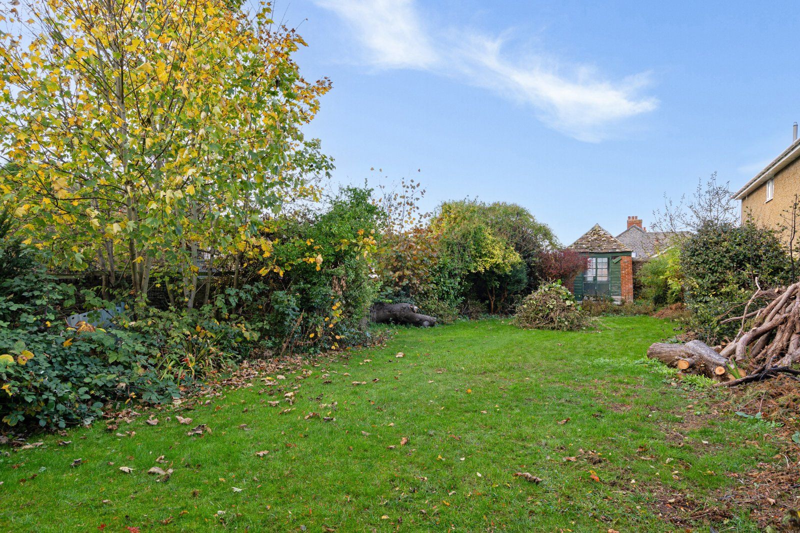 At the far end stands a further Grade II listed garden structure, offering a charming focal point and the potential to create a characterful seating area or landscaped feature.