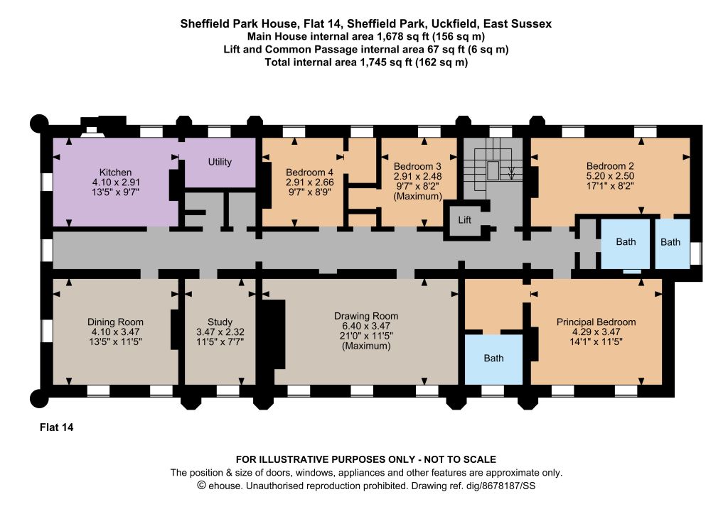 The apartment is approached from the A275 under a large, stone, archway, down the sweeping driveway to a large parking area benefiting from the use of a garage. There is another access through Sheffield Park & Gardens, which is only a stone throw’s distance from the apartment.