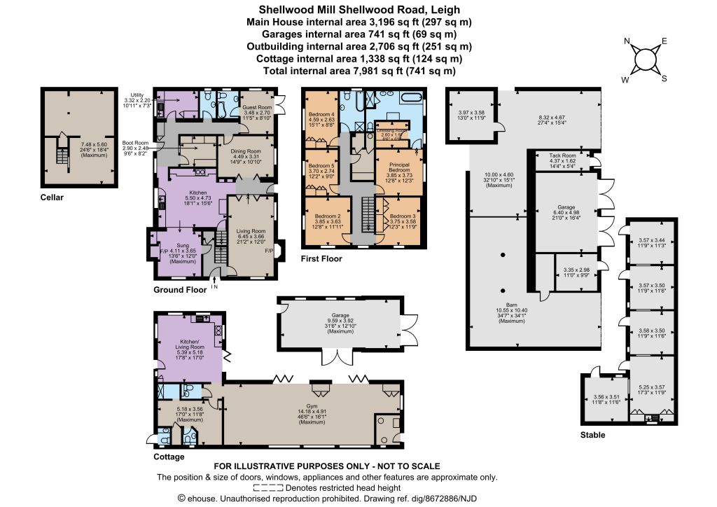 Outside At the entrance to the property, the gravel driveway leads to the house, the annexe and the outbuildings, which include a barn and a stable block. There is plenty of parking space and access to the outbuildings, including parking in a detached garage and further garaging within the large barn. There are beautiful gardens to the rear of the house, which feature rolling lawns and south and west gravel and paved terracing, bordered by colourful beds, as well as an outdoor heated swimming pool with its own sun terrace. Various mature trees and established shrubs and hedgerows provide shade, with the safari-style gazebo providing additional space for outside dining. There are extensive equestrian facilities with grounds extending to 7.4 acres, with a further 6.4 acres available by separate negotiation. The grounds include a 20m x 40m all weather menage with lights, also fields and paddocks, mainly with post and rail fencing. The stable block includes four stables and a foaling box. There is also a tack room, useful storage barn, detached garage and workshop. Direct access to the bridleway network.